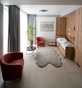 The rooms feature warm, calming tones that promote relaxation and recovery. Comfortable beds, thoughtful furniture, and soft lighting create a cozy and soothing atmosphere. - Individual approach: