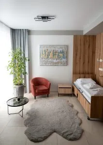 The rooms feature warm, calming tones that promote relaxation and recovery. Comfortable beds, thoughtful furniture, and soft lighting create a cozy and soothing atmosphere. - Individual approach: