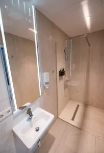 Each room is equipped with a climate control and ventilation system, allowing every patient to adjust the environment to their comfort. - Conveniences: